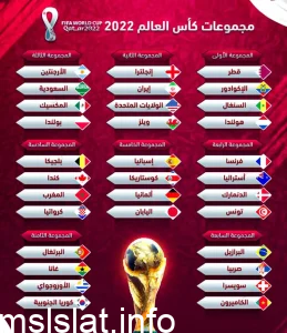 وبحسب ما ورد عن مجموعات مونديال قطر 2022 على النحو التالي: