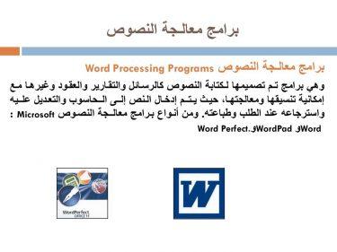 برامج معالجة النصوص Word Processing Programs
